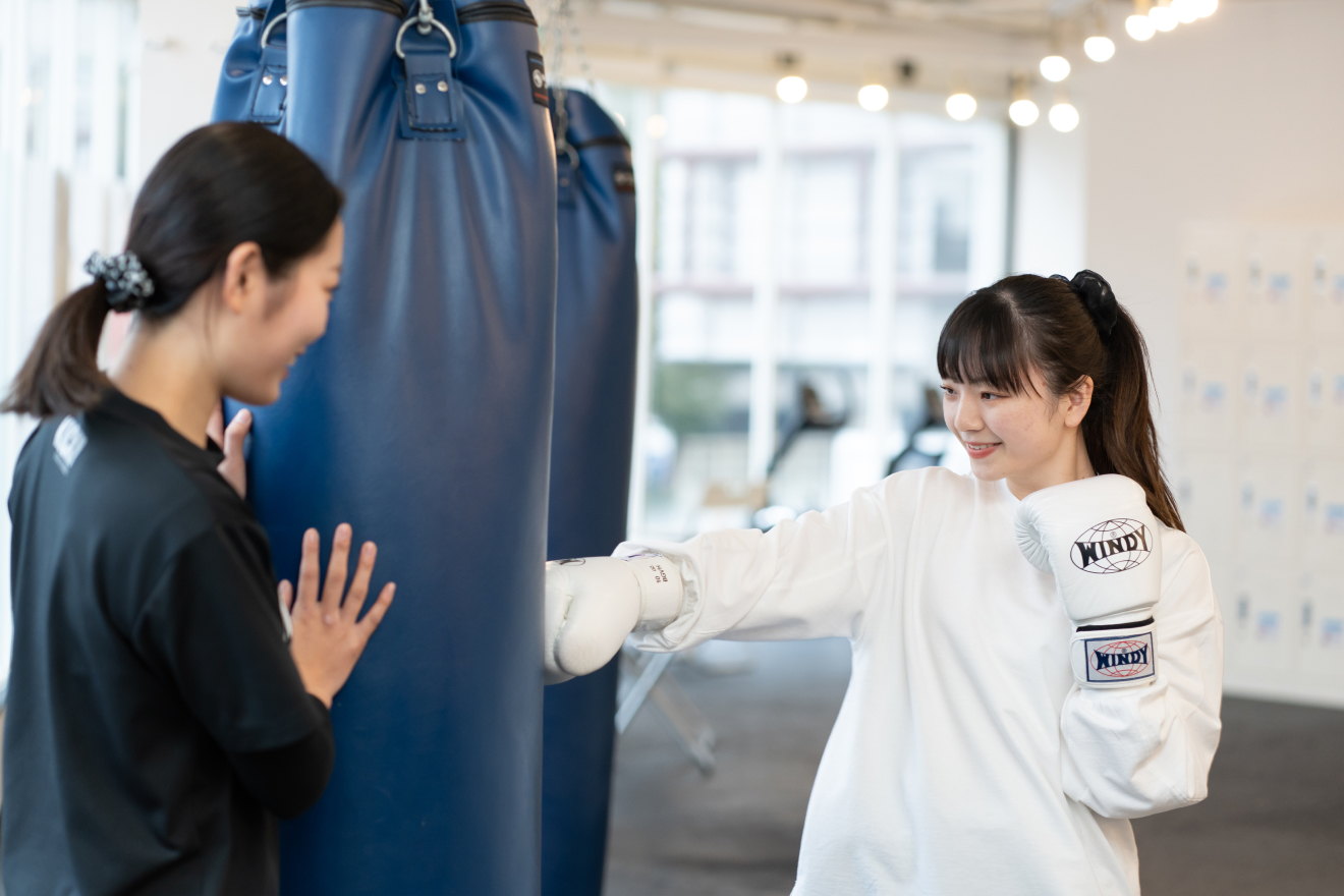 経験のない方でも、トレーナーがパンチとキックの基礎を